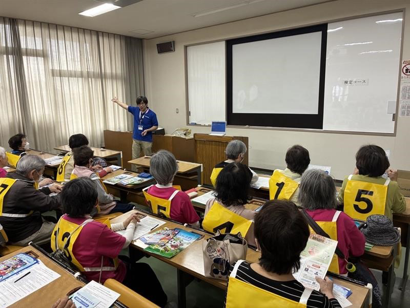 大阪・松原市では近鉄自動車学校にて、老人クラブ連合会の会員78名を対象に座学と試乗を実施。自転車および特定原付の安全な乗車方法や交通ルール、青切符制度について、松原警察署と協力し理解を深めていただきました。