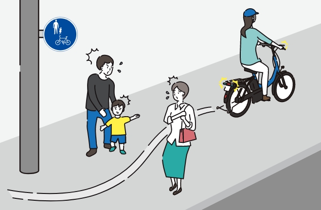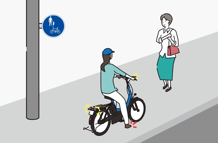 ・歩道の中央から車道寄りの部分を徐行しなければなりません。
